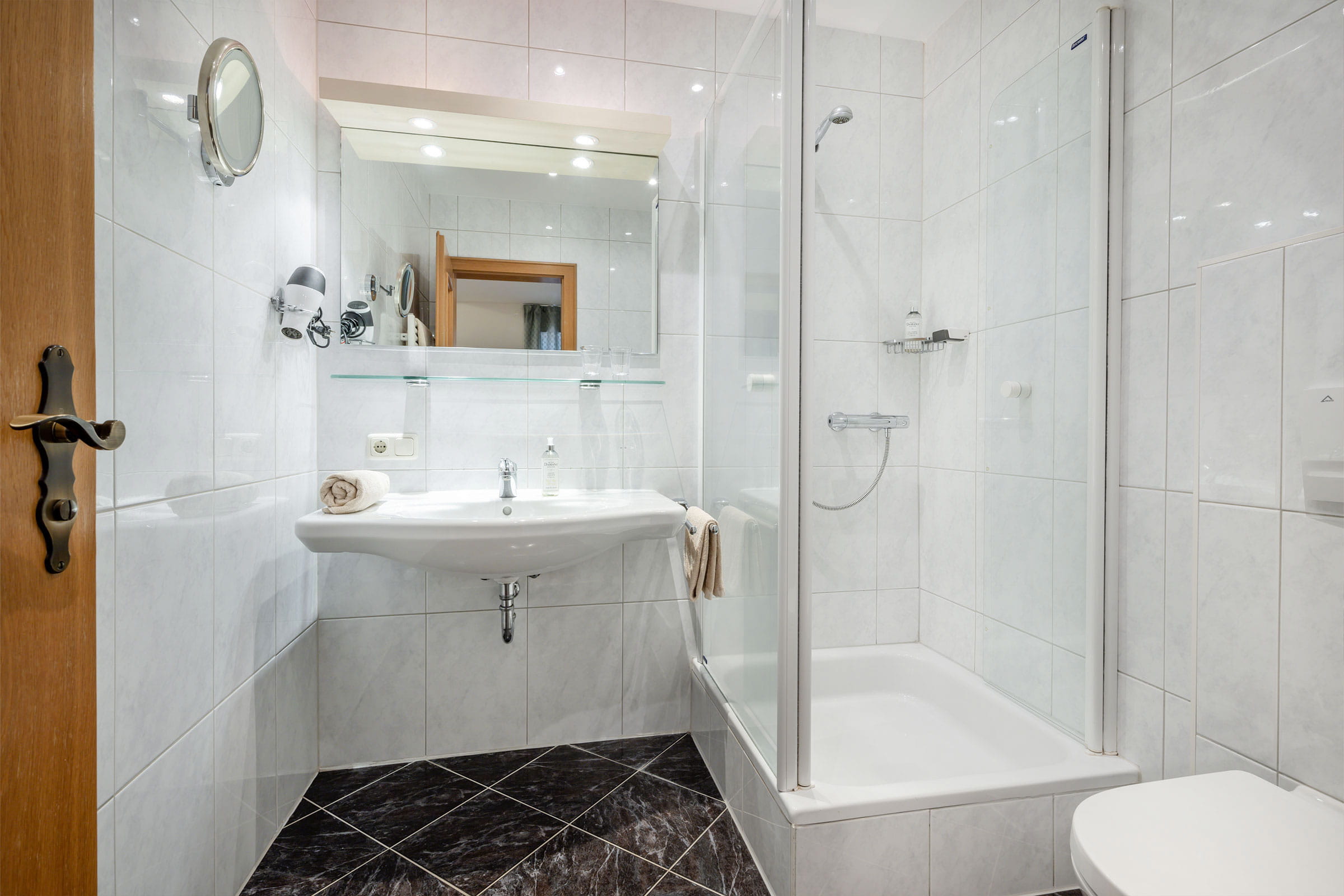 mit WC/begehbarer Dusche - Kosmetikspiegel, Haarfön